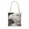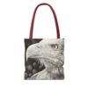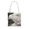 Perfect for the beach, coffee shop, or office, this durable all-over print tote combines art and practicality. Made from 100% polyester with a laminated interior, it’s built to last and makes a meaningful statement. This tote comes in one size (13″ × 13″) and features sturdy cotton handles available in navy, beige, white, black, or red.