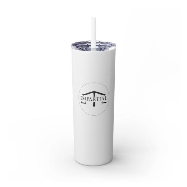 Keep your favorite drinks at the perfect temperature with this sleek 20oz skinny tumbler, featuring the black/white Impartial logo. Crafted from durable stainless steel, it’s designed for daily use and built to last. The tumbler showcases crisp, wraparound artwork with a glossy finish and includes a clear push-on lid with a secure seal and matching straw. Dishwasher-safe for easy cleaning, it’s the perfect blend of style, practicality, and purpose.