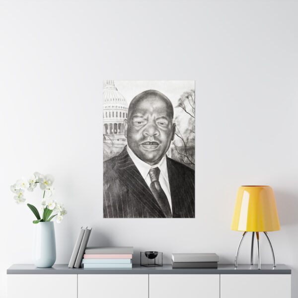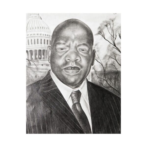 This black-and-white portrait of John Lewis, created by incarcerated artist Sharoid, honors the life and legacy of a man who dedicated himself to nonviolent resistance and the fight for human dignity. With careful shading and emotional depth, Sharoid captures Lewis’s steady resolve — a quiet strength shaped by years on the front lines of the Civil Rights Movement. John Lewis spent a lifetime “getting in good trouble.” Through this portrait, Sharoid reflects the courage and hope Lewis carried into every battle, reminding us that change begins with persistence, conviction, and community.