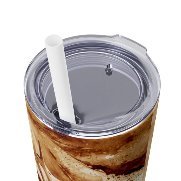 Keep your favorite drinks at the perfect temperature with this sleek 20oz skinny tumbler. Crafted from durable stainless steel, it’s designed for daily use and built to last. The tumbler showcases crisp, wraparound artwork with a glossy finish and includes a clear push-on lid with a secure seal and matching straw. Dishwasher-safe for easy cleaning, it’s the perfect blend of style, practicality, and purpose.