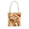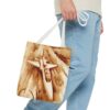 Perfect for the beach, coffee shop, or office, this durable all-over print tote combines art and practicality. Made from 100% polyester with a laminated interior, it’s built to last and makes a meaningful statement. This tote comes in one size (13″ × 13″) and features sturdy cotton handles available in navy, beige, white, black, or red.