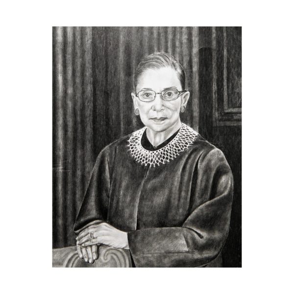 RBG is a striking black-and-white portrait created by Sharoid, an incarcerated artist whose work honors leaders who have shaped movements for justice and human rights. With meticulous shading and bold contrast, he captures the strength, clarity, and conviction of Ruth Bader Ginsburg — a symbol of persistence and principle. Through careful attention to expression and presence, he brings powerful historical voices into the present, reminding us of the ongoing work toward equality and freedom.