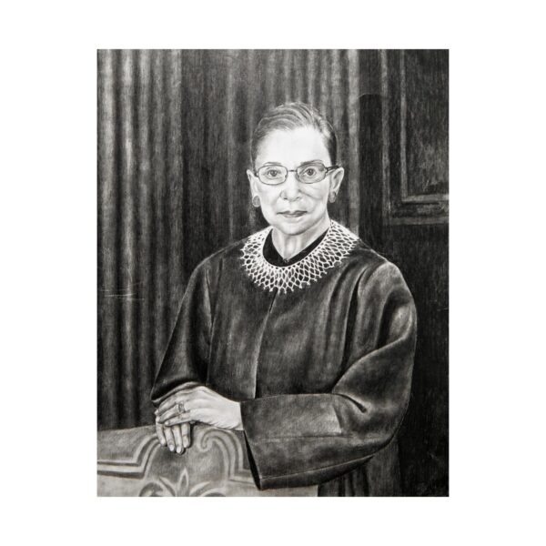 RBG is a striking black-and-white portrait created by Sharoid, an incarcerated artist whose work honors leaders who have shaped movements for justice and human rights. With meticulous shading and bold contrast, he captures the strength, clarity, and conviction of Ruth Bader Ginsburg — a symbol of persistence and principle. Through careful attention to expression and presence, he brings powerful historical voices into the present, reminding us of the ongoing work toward equality and freedom.