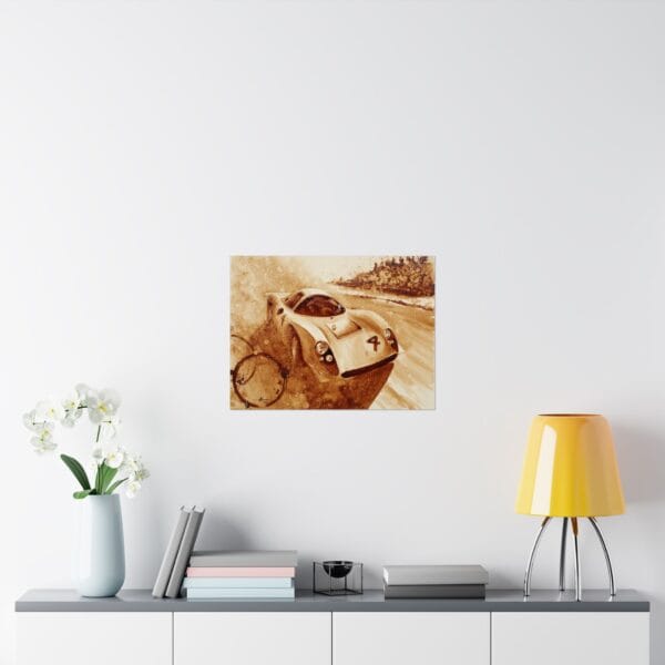 Bring speed, creativity, and inspiration to your everyday life with Spa-Francorchamps by Perry, a talented incarcerated artist who uses coffee as his paint — a resourceful, no-cost material that allows him to create striking, detailed artwork despite the limits of prison life. This piece captures the thrill of a car racing along the iconic Spa-Francorchamps track, symbolizing freedom, precision, and the pursuit of passion, a reflection of Perry’s own journey and resilience. Art has been a constant source of calm and purpose for him, and he hopes to continue exploring his craft after his release in two years.
