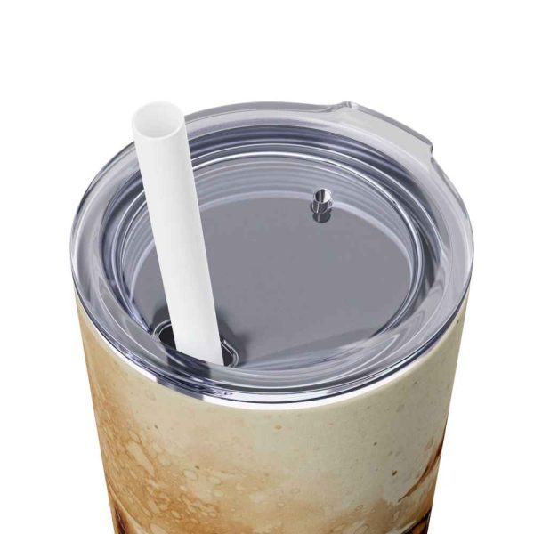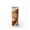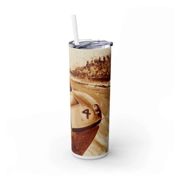 Keep your favorite drinks at the perfect temperature with this sleek 20oz skinny tumbler. Crafted from durable stainless steel, it’s designed for daily use and built to last. The tumbler showcases crisp, wraparound artwork with a glossy finish and includes a clear push-on lid with a secure seal and matching straw. Dishwasher-safe for easy cleaning, it’s the perfect blend of style, practicality, and purpose.