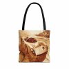 Perfect for the beach, coffee shop, or office, this durable all-over print tote combines art and practicality. Made from 100% polyester with a laminated interior, it’s built to last and makes a meaningful statement. This tote comes in one size (13″ × 13″) and features sturdy cotton handles available in navy, beige, white, black, or red.